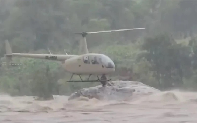 وأظهرت لقطات مصورة لحظة اقتراب المروحية على ارتفاع منخفض من مياه نهر فوندوزي المتدفقة بعنف، وسط رياح عاتية، بينما كان الطيار يكافح للحفاظ على توازن الطائرة في ظروف جوية بالغة الصعوبة، وفقاً لصحيفة "ذا صن" البريطانية.