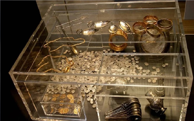 شملت المجموعة 15,233 عملة، أواني فضية، حُليا ذهبية، وملاعق، إضافة إلى أدوات استخدام شخصي أقل قيمة، مع بقايا من الخشب ومواد عضوية تشير إلى أن الكنز دُفن في صندوق خشبي مزود بأقسام داخلية ولفائف من القش والقماش للحماية.