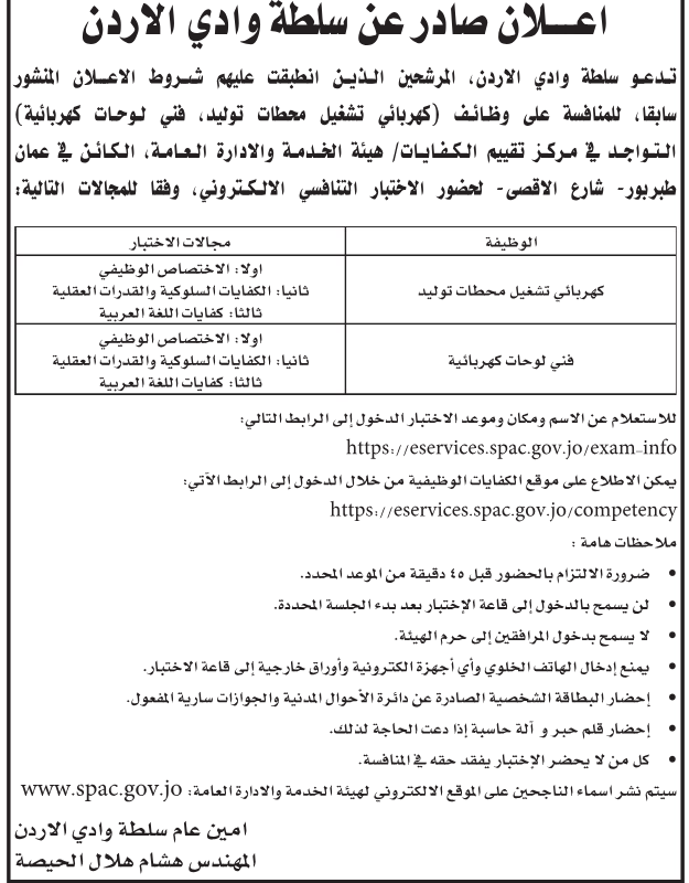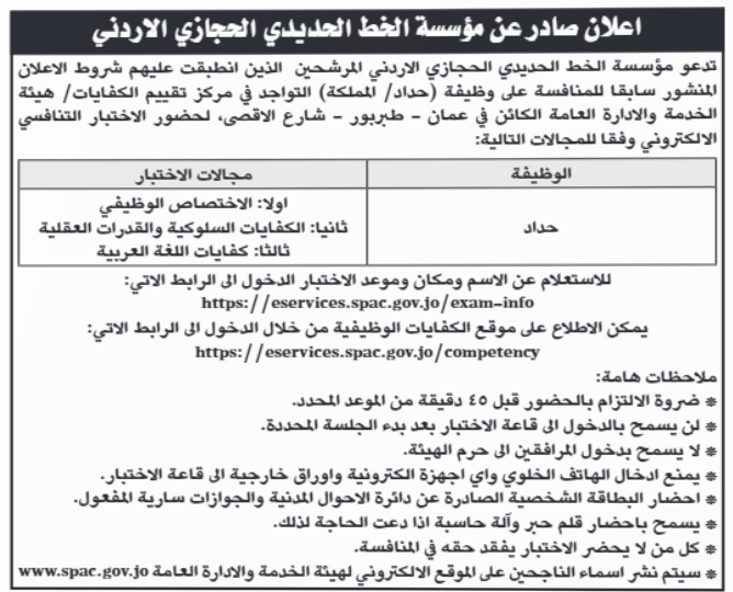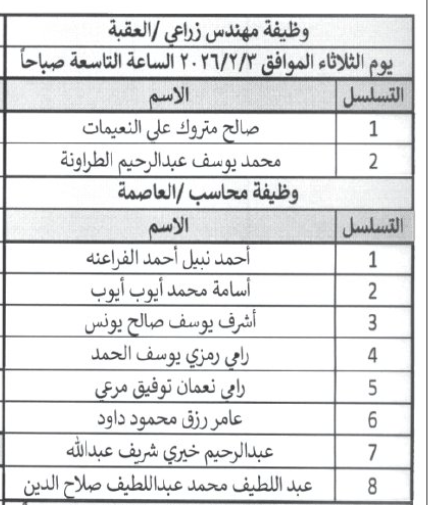 نيسان ـ دعت وزارات ومؤسسات حكومية عدد من المتقدمين لملء شواغر وظيفية إلى إجراء المقابلات الشخصية وإجراء امتحانات الكفايات.
