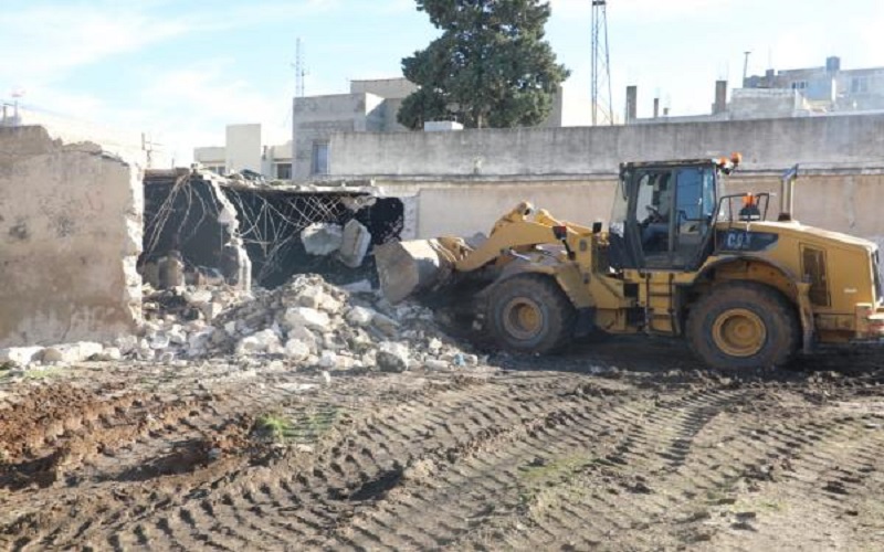 إزالة بناء آيل للسقوط قرب مدرسة في إربد
