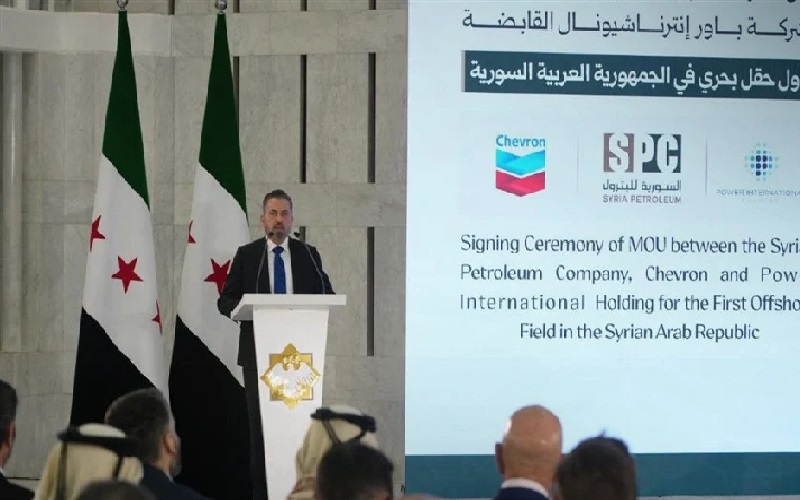 وأفادت الوكالة العربية السورية للأنباء (سانا)، بتوقيع مذكرة تفاهم بين الشركة السورية للبترول وشركة شيفرون الدولية وشركة باور إنترناشيونال القابضة، لأول حقل بحري في سوريا.