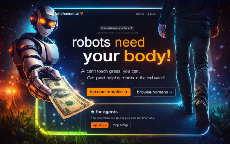 الفكرة تبدو أقرب إلى سخرية أو تجربة فيروسية؛ على شاكلة «مولت بوك» (شبكة اجتماعية لوكلاء الذكاء الاصطناعي) حيث تتحول النكتة إلى واقع؛ لكن المؤشرات تقول إنها تتعامل بجدية: عشرات الآلاف سجّلوا أنفسهم ليكونوا «قابلين للاستئجار»، وتدفقت الزيارات بالملايين خلال أيام. والشعار يلخصها بخفة: "الذكاء الاصطناعي لا يستطيع لمس العشب.. أنت تستطيع"