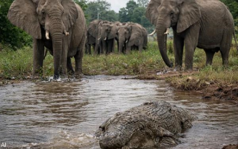 هرب من الأفيال فافترسه تمساح