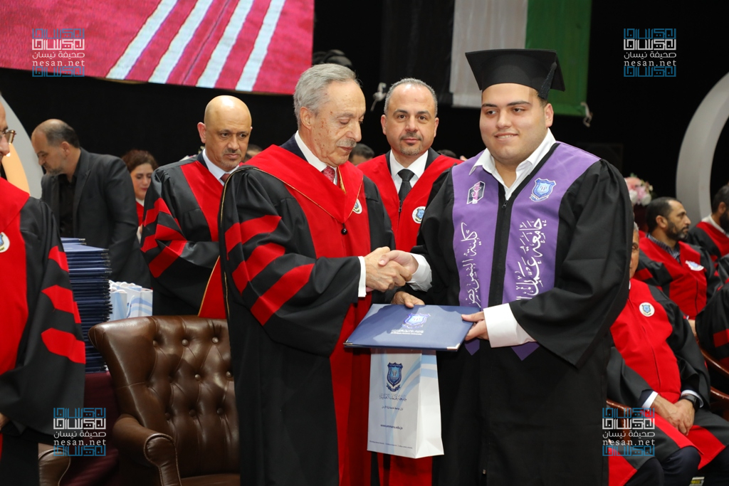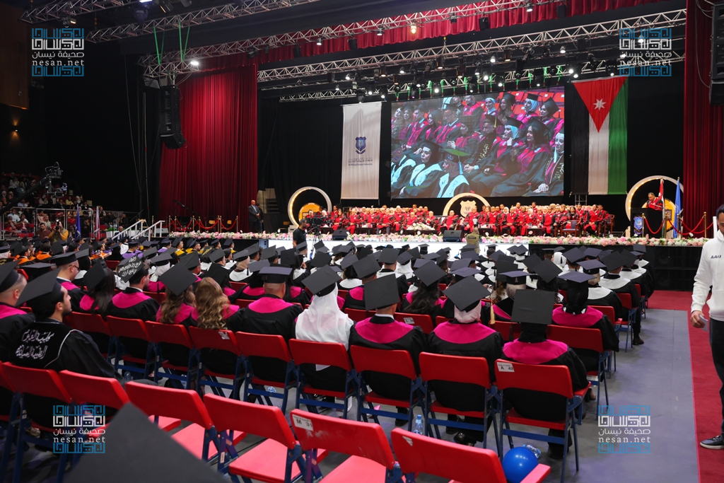 نيسان ـ رعى دولة الاستاذ عبدالكريم الكباريتي رئيس مجلس أمناء جامعة عمان الاهلية مساء أمس 16-2-2026 على مسرح الأرينا احتفال الجامعة لليوم الثاني بتخريج طلبتها للفصل الاول 2025-2026 من الفوج (33) لكليات : " الهندسة، الصيدلة، تقنية المعلومات، التمريض، العمارة والتصميم، والعلوم الطبية المساندة والتكنولوجيا الزراعية " ، بحضور الاستاذ الدكتور ساري حمدان رئيس الجامعة ، والاستاذ عمر الحوراني نائب رئيس هيئة المديرين ، وعدد من أعضاء مجلس الأمناء ، ونائب رئيس الجامعة الاستاذ الدكتور احمد حمدان " عميد كلية طب الاسنان " ، ومساعد الرئيس لشؤون الاعتماد والجودة والتخطيط الدكتور إياد شعبان، والسادة العمداء ، وأعضاء الهيئة التدريسية ، وعدد من أعضاء الهيئة الإدارية ، وحشد كبير من ذوي الطلبة الخريجين والمدعوين .