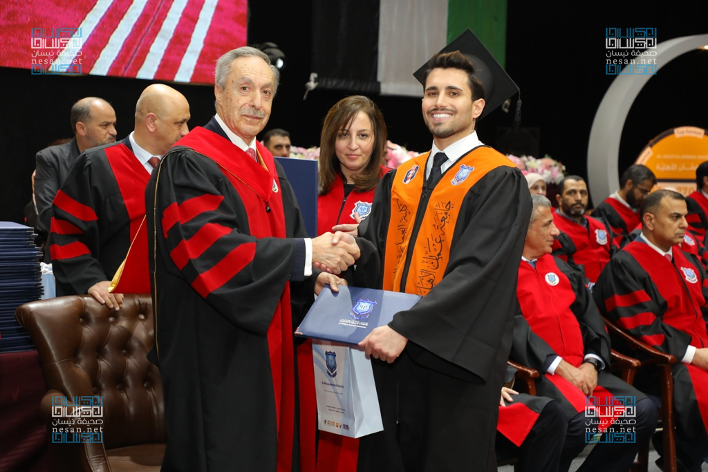 وبعد ان قدم الشكر لوالديه وعائلته ولأهالي الخريجين ، اختتم كلمته بالقول للخريجين : ابدأوا من اليوم بخطوات ثابتة نحو أحلامكم، والتفتوا خلفكم أحياناً لتروا المسافة التي قطعتموها، فقد تحتاجون هذا التذكير حين تشعرون بالتعب.