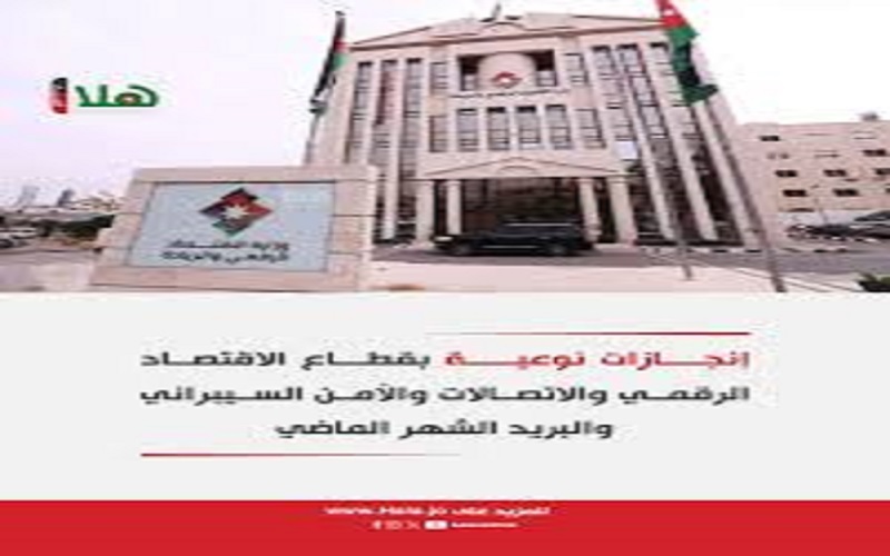 نيسان ـ أظهر تقرير إنجازات الوزارات والمؤسسات الحكومية لشهر كانون الثاني الماضي، الصادر عن وزارة الاتصال الحكومي، إنجاز 11 مشروعا في قطاع الاقتصاد الرقمي والاتصالات والأمن السيبراني والبريد.