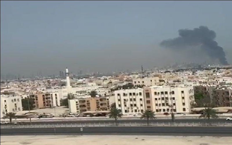 وتصاعدت أعمدة الدخان من منطقة الجفير التي تضم قاعدة بحرية أمريكية.