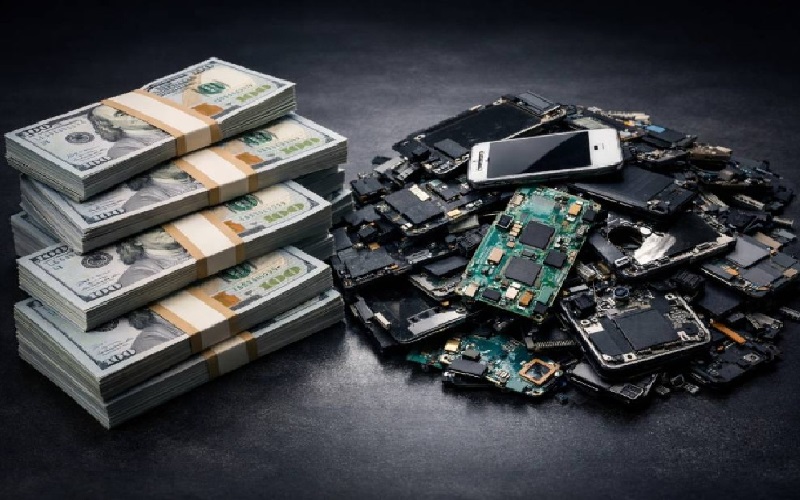 وتشير التقديرات إلى أن الهاتف الذكي الواحد يحتوي على ما بين 7 و34 ملليغراما من الذهب في مكوناته، خاصة في لوحات الدوائر والموصلات، وهو ما يعادل قيمة تتراوح بين 1.16 و5.81 دولارات تقريبا، ورغم ضآلة الكمية في الجهاز الواحد، فإن التخلص من ملايين الأجهزة سنويا يجعل القيمة الإجمالية للذهب المهدور كبيرة ومؤثرة اقتصاديا.
