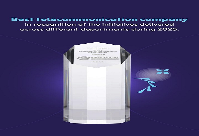 نيسان ـ حصلت شركة زين الأردن على جائزة "أفضل شركة اتصالات" ضمن جوائز Global Business Outlook Awards العالمية؛ وذلك لدعمها مسيرة التحوّل الرقمي في المملكة والارتقاء بتجربة زبائنها، وتقديراً للإنجازات والمبادرات العديدة التي نفّذتها الشركة عبر مختلف أقسامها خلال العام 2025.