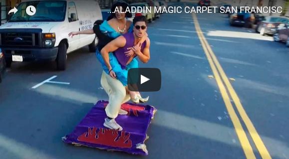 وأثار أحد الناشطين على موقع التواصل الاجتماعي يوتيوب دهشة المارّة في شوارع سان فرانسيسكو بولاية كاليفورنيا الأمريكية، بعد أن ظهر مرتدياً زي شخصية علاء الدين الاسطورية، وراح يطير من مكان إلى مكان على بساطه السحري، بحسب موقع إليت دايلي.