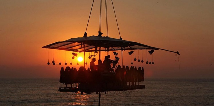 كثيرة هي المعالم المثيرة في مدينة دبي الساحرة، لكن هذه المرة أضيف للمدينة معلم جديد، عبارة عن مطعم مُعَلَق على ارتفاع 500 مترًا في السماء، يتيح لرواده الاستمتاع بتناول الحلوى والشطائر والمشروبات وهم بين السماء والأرض.