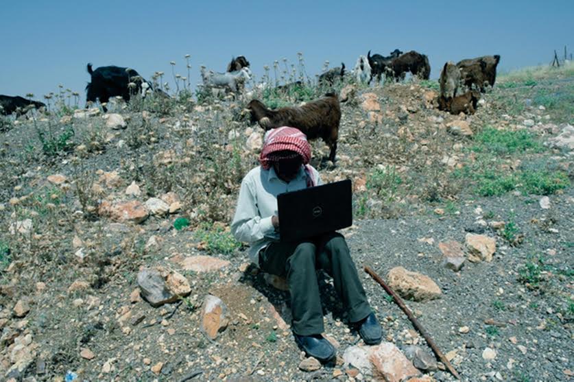 شقراؤه التي يأمل أن يلتقيها في إحدى زوايا "محموله"، بعد قليل، في انتظاره..