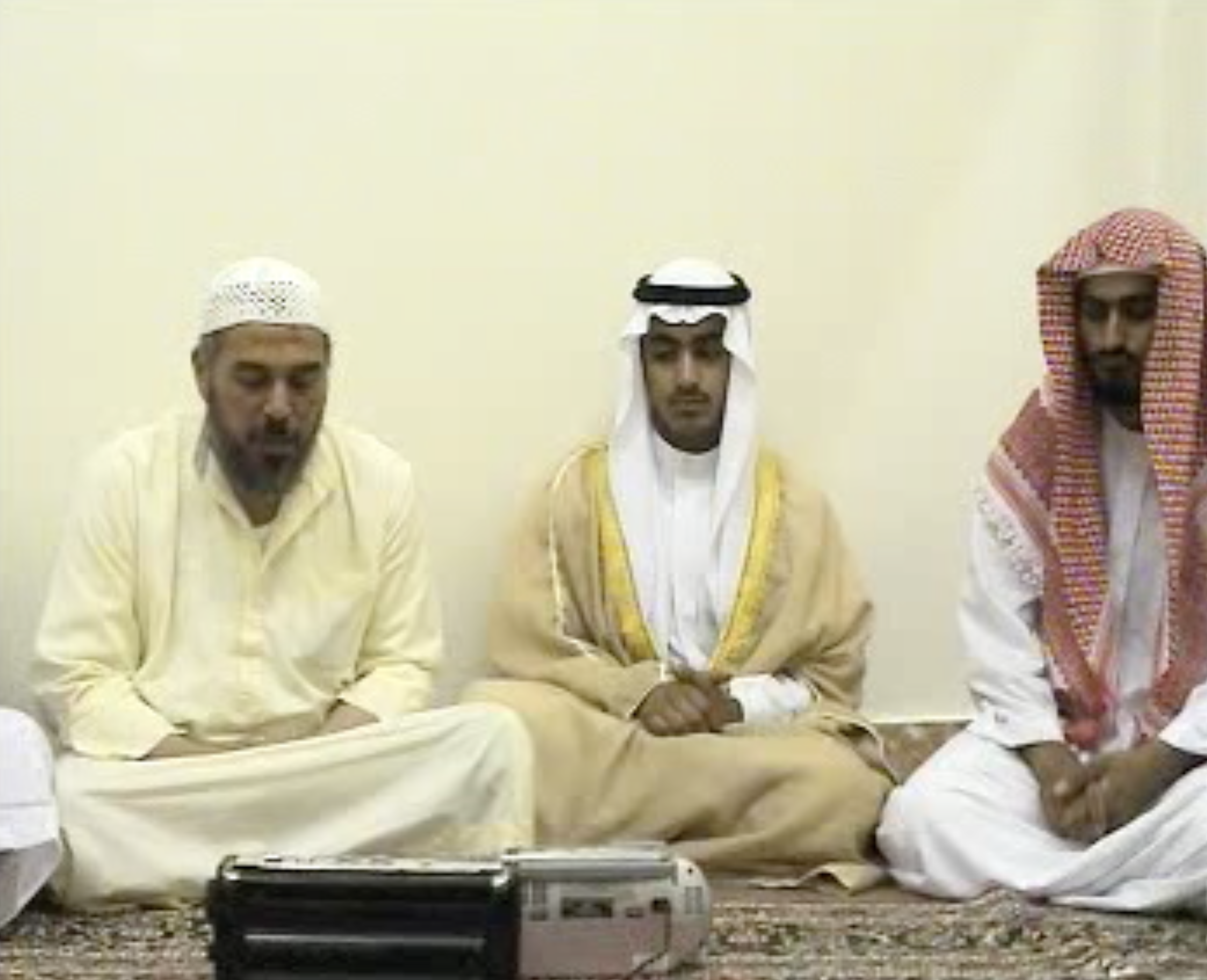 حمزة بن لادن (وسط) خلال حفل زفافه (فرانس برس نقلاً عن السي آي إيه)
